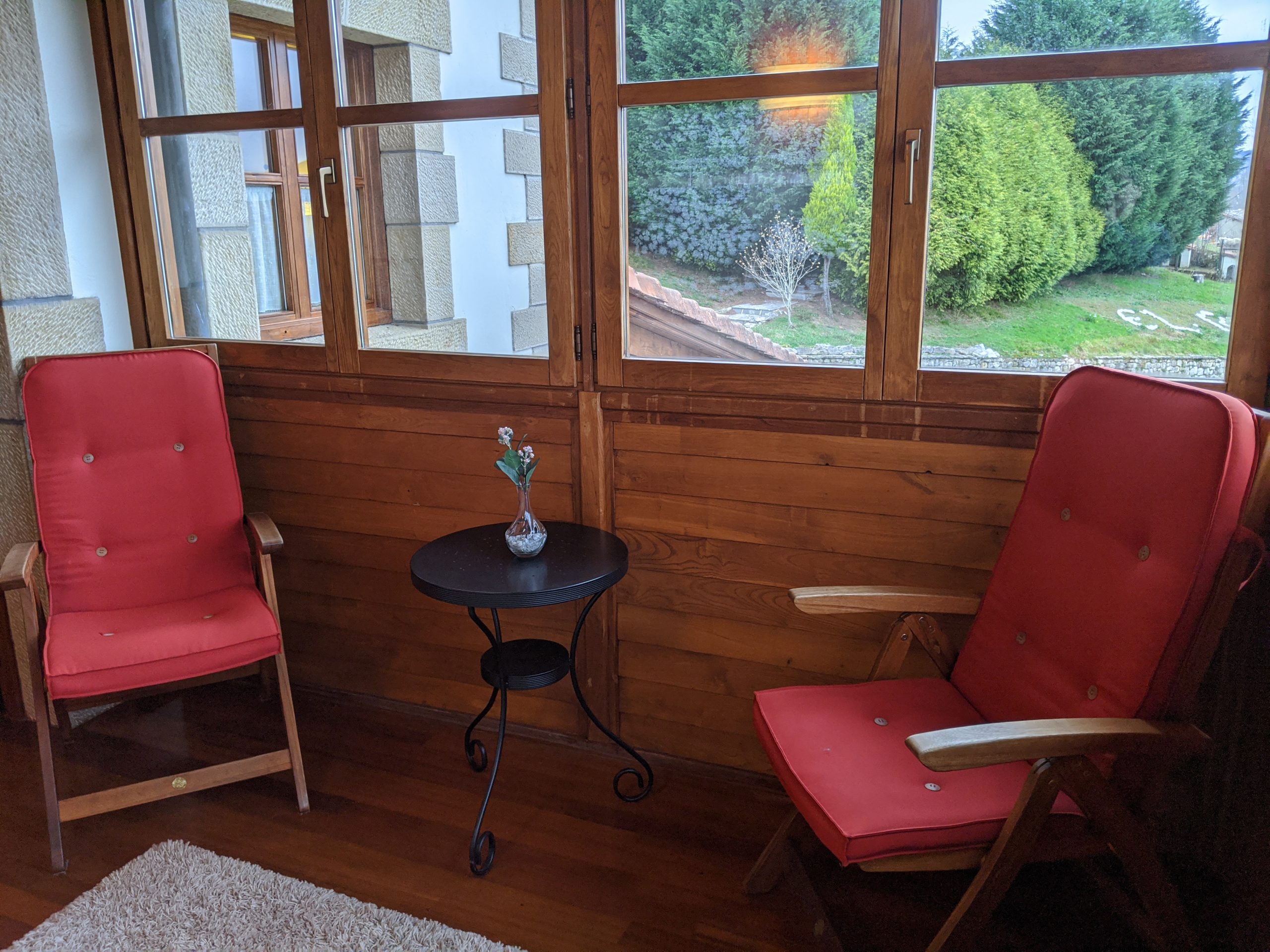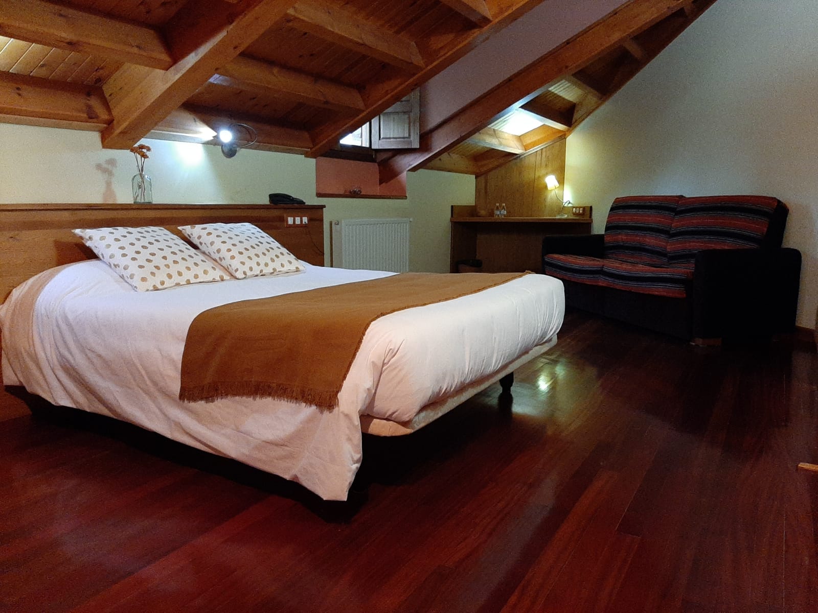 Dos de las habitaciones de la primera planta son “especiales,” disponen de bañera de hidromasaje y un pequeño salón acristalado con vistas al valle. También disponemos de habitaciones cuádruples con dos estancias independientes y habitaciones triples. Si es necesario instalamos cunas y camas supletorias.